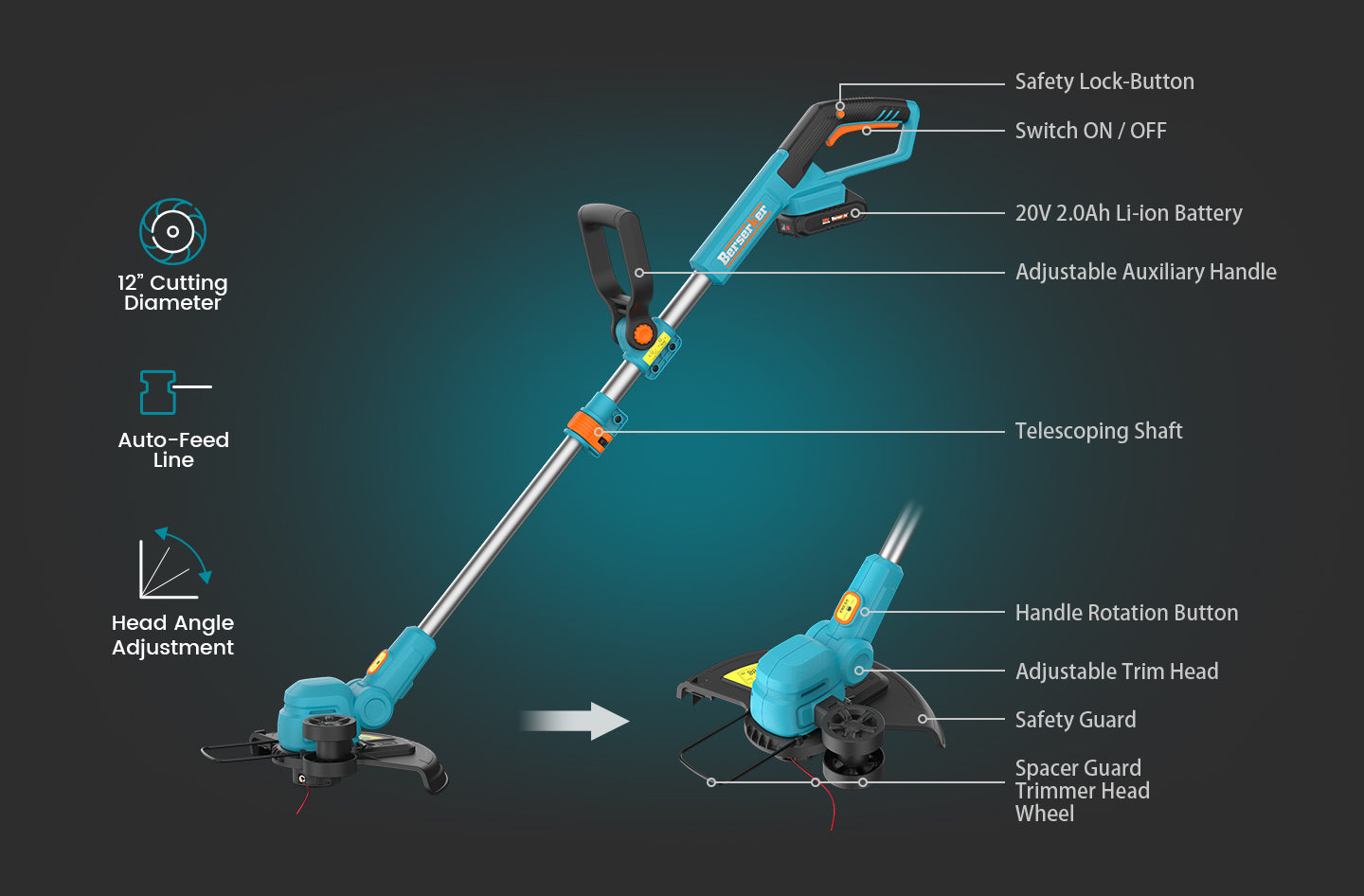 Berserker 20V 12" Cordless String Trimmer 2 * 2.0Ah: Your All-in-One Landscaping Solution